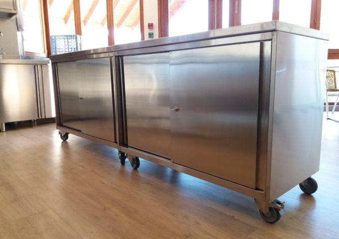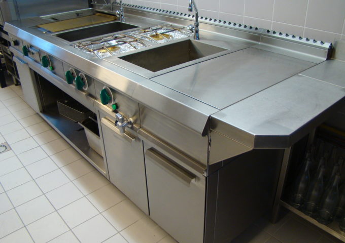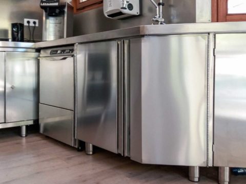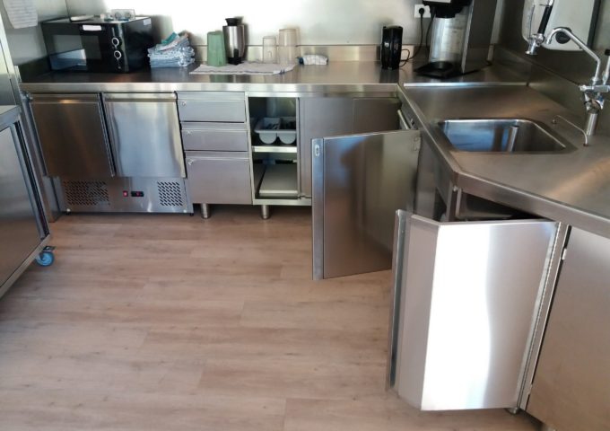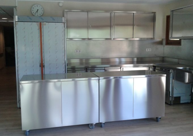 Les plans de travail et mobilier inox sont aussi présents à tous les postes de la cuisine. Ils doivent être robustes, pratiques et faciles à nettoyer.