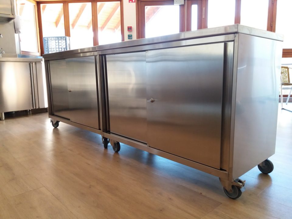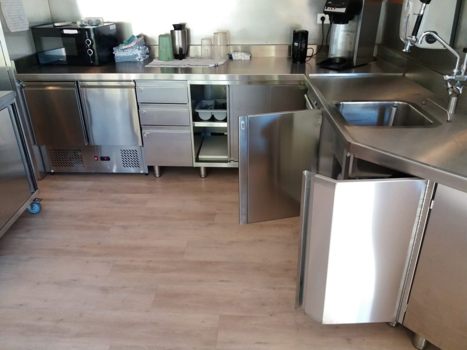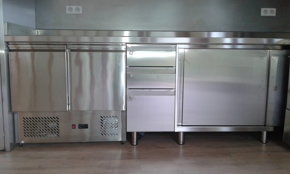 Les plans de travail et mobilier inox sont aussi présents à tous les postes de la cuisine. Ils doivent être robustes, pratiques et faciles à nettoyer.