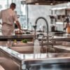 Pour les postes de laverie-vaisselle, avec notamment : Les lave-verres frontaux sans essuyage, lave-vaisselle frontaux, à capots ou à avancements de casier pour fort débit, lave-couverts avec ou sans grains, lave-batteries multi-capacités, récupérateurs d’énergie, traitement de l’eau, adoucisseurs, osmoseurs, douchettes, robinetteries, lave-mains, produits lessiviels…