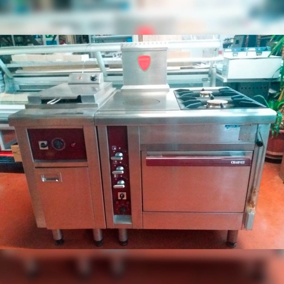 Plaque mijotage + 2 feux vifs gaz sur four électrique